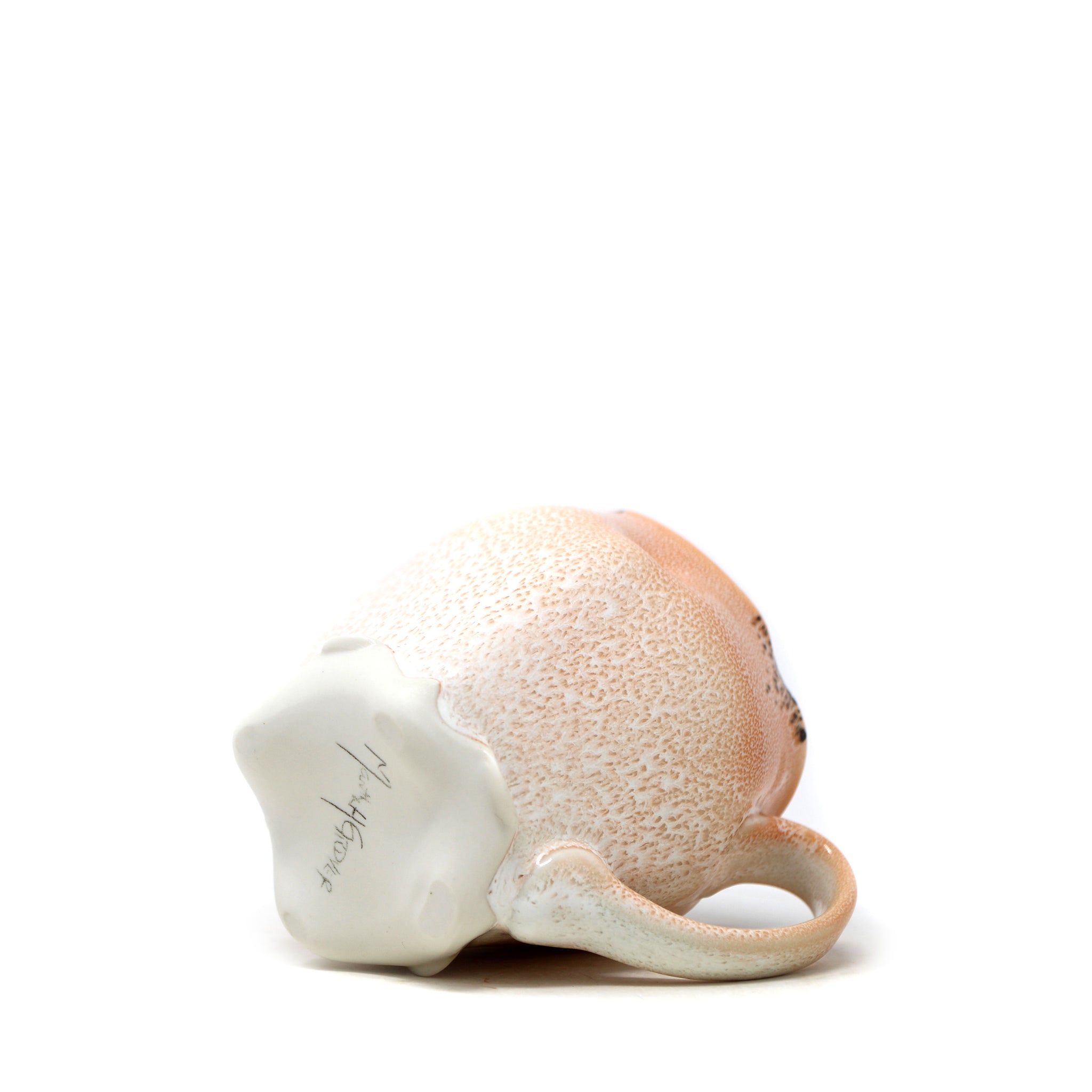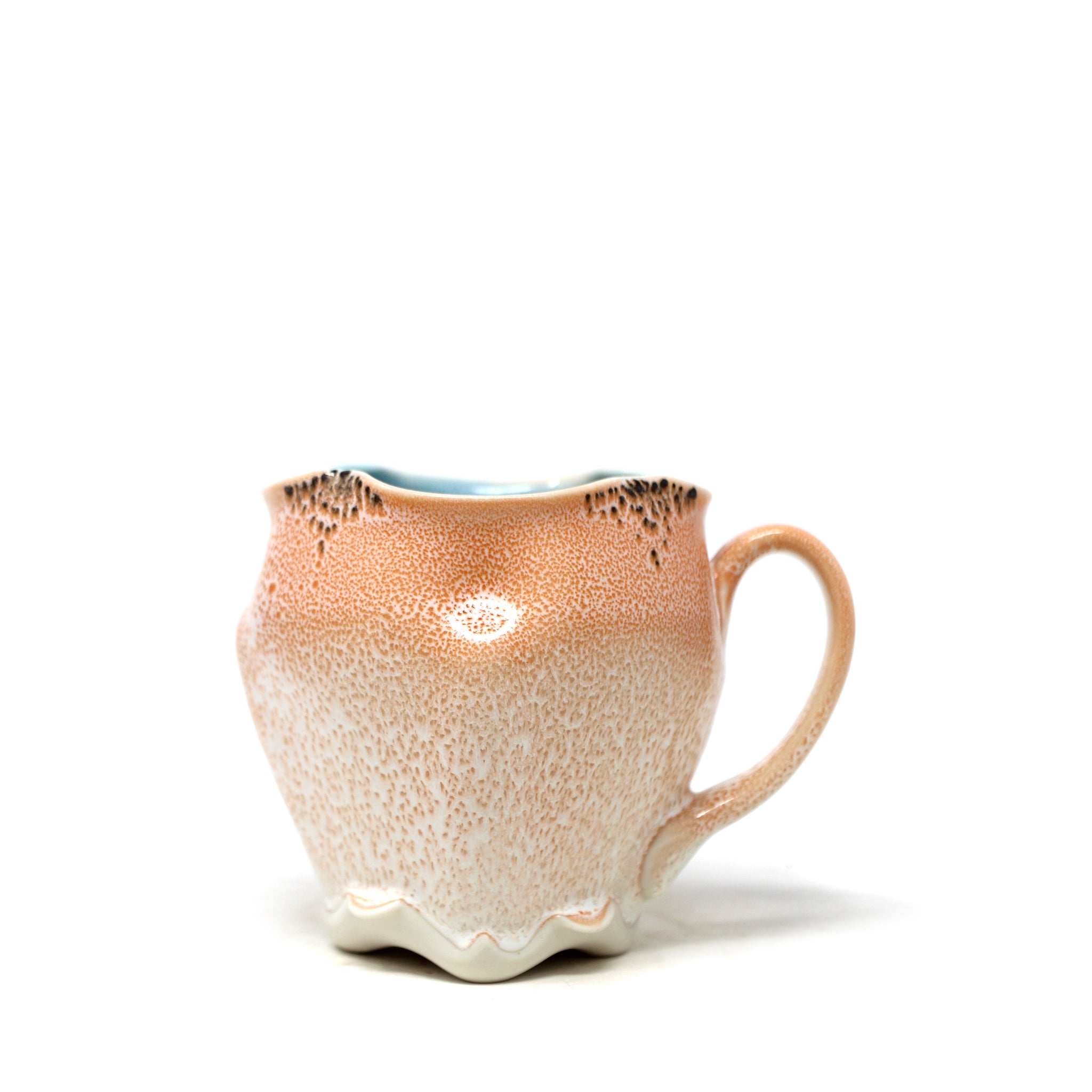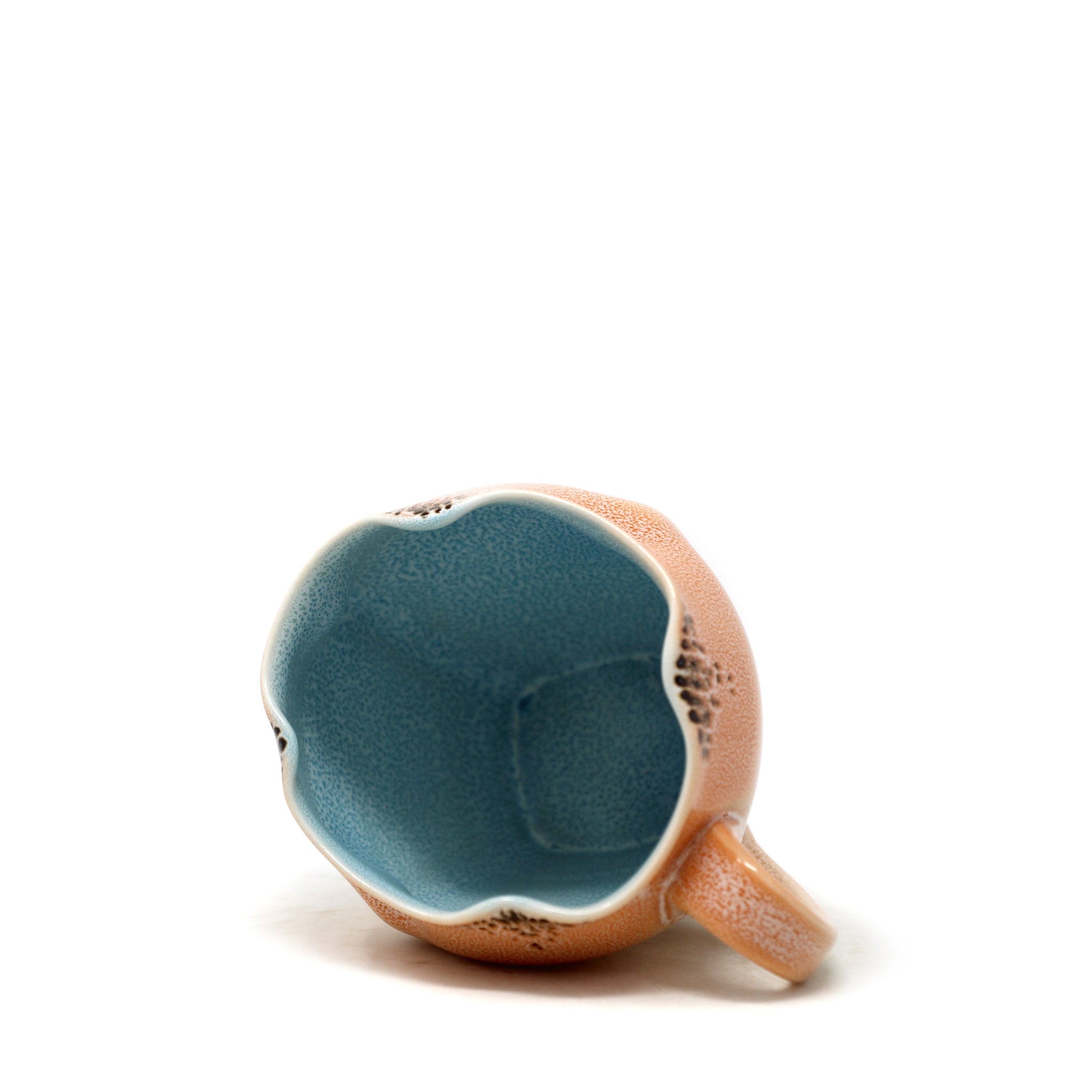 Porcelain, layered orange and cream glazes with blue interior