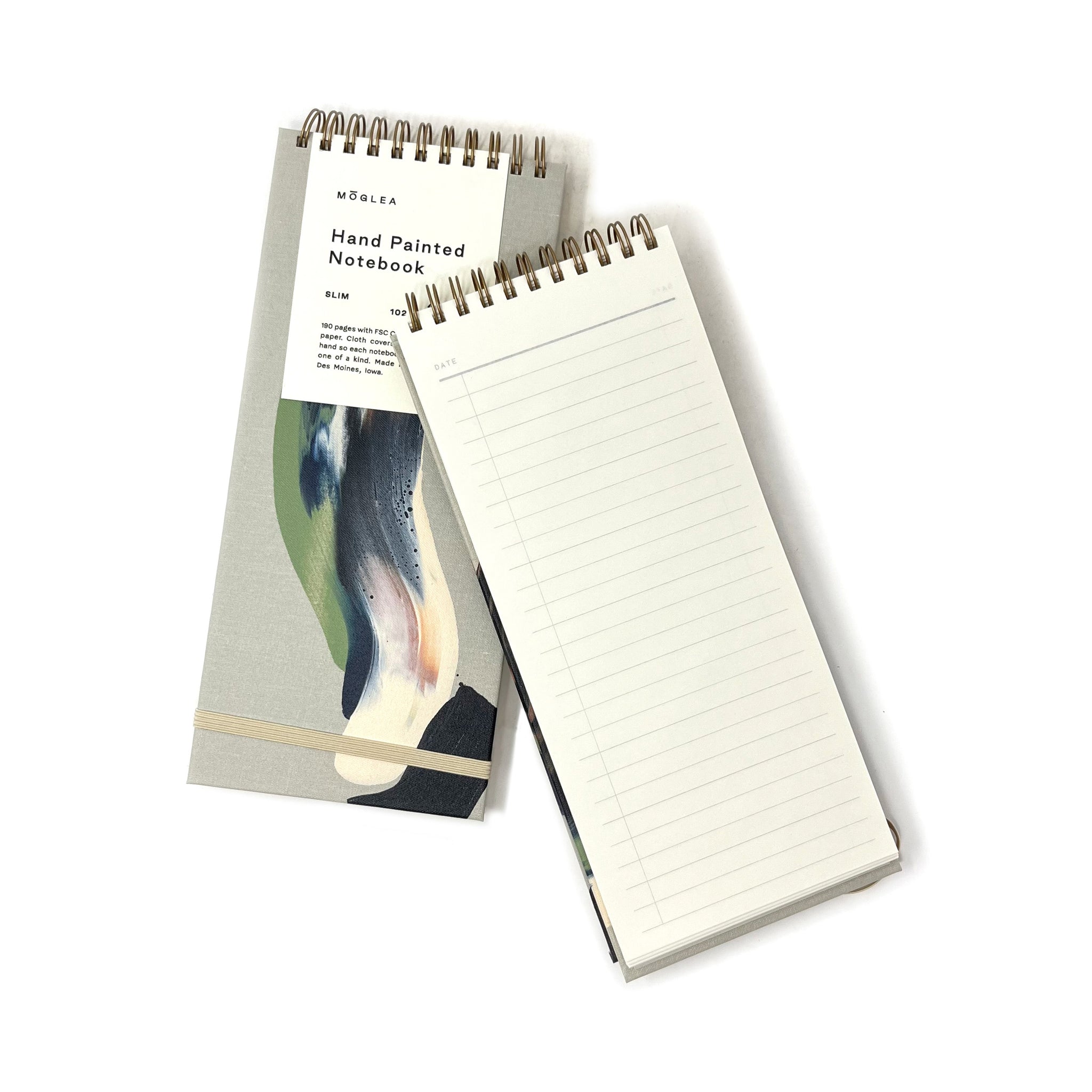 • Hand painted cloth cover with wire binding and elastic closure
