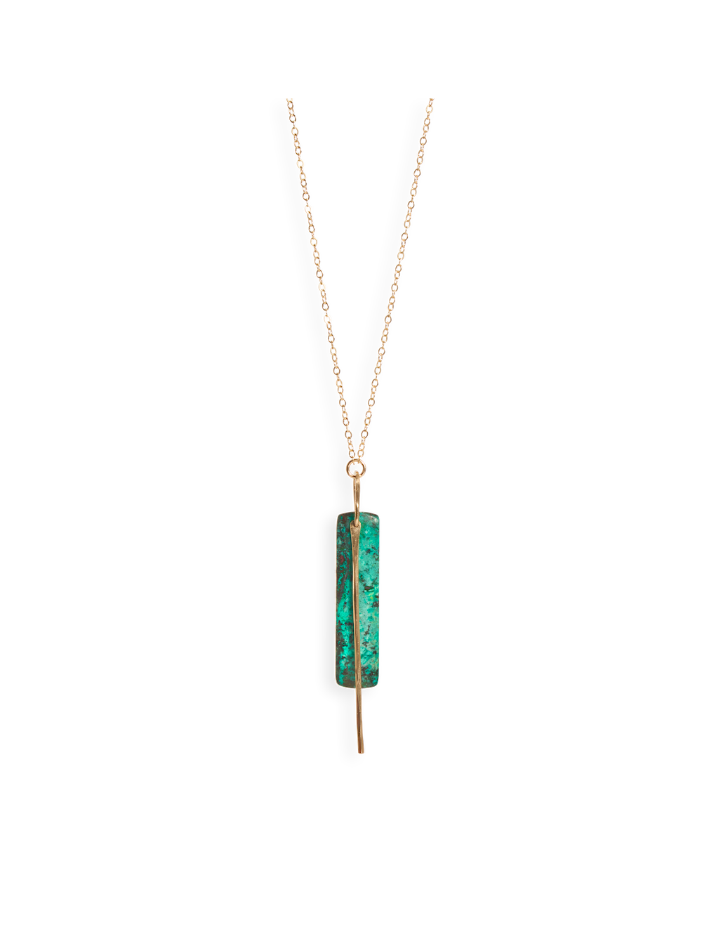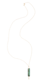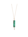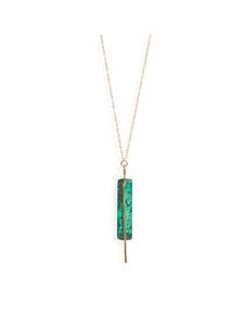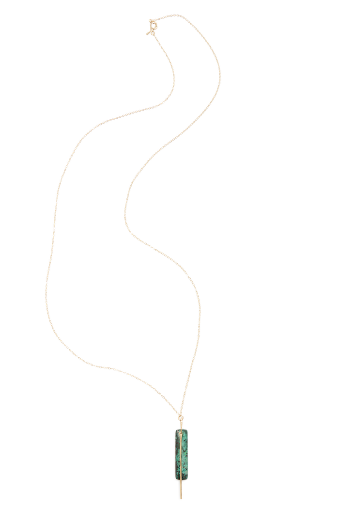- Long necklace perfect for layering. A semiprecious stone paired with a simple bar.