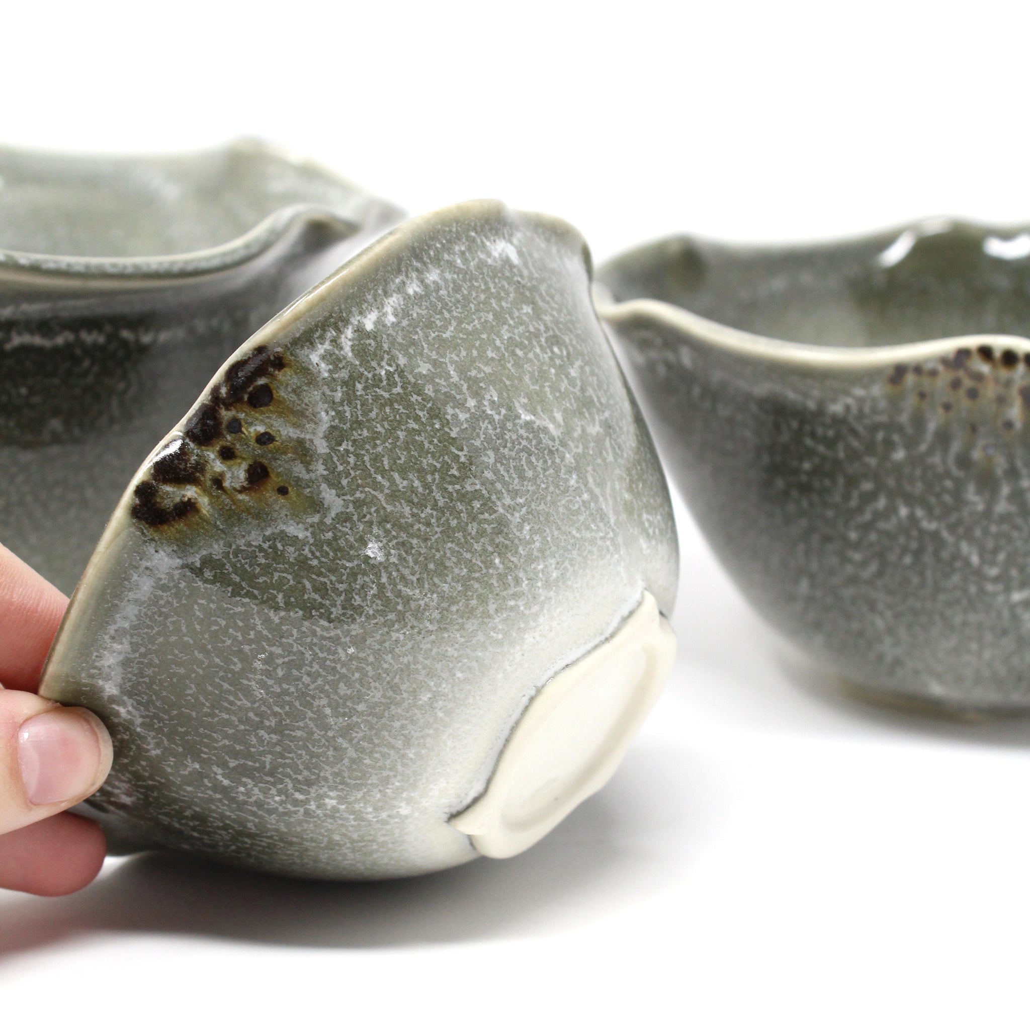 - Wheel thrown and altered porcelain, 3 piece nesting bowl set
